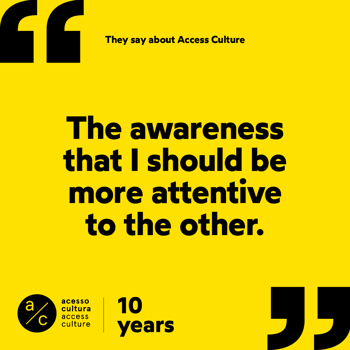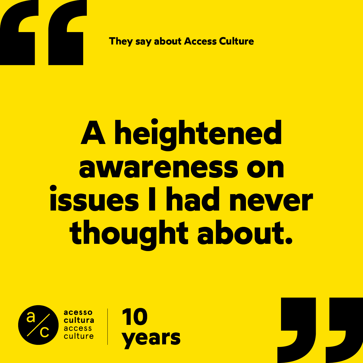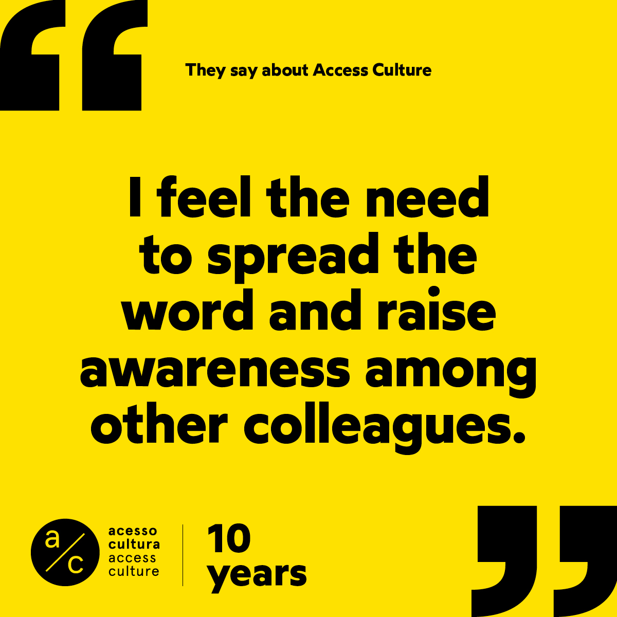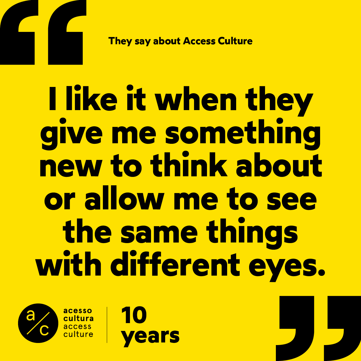 In 2023, Access Culture became 10 years old. Over these years, people who follow our work and participate in our activities have shared with us what this experience has meant to them. In most cases, this feedback comes anonymously, through the evaluation forms of our initiatives.