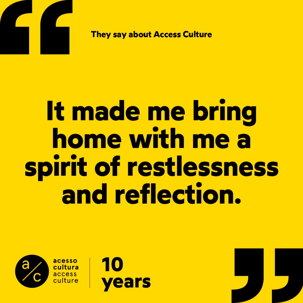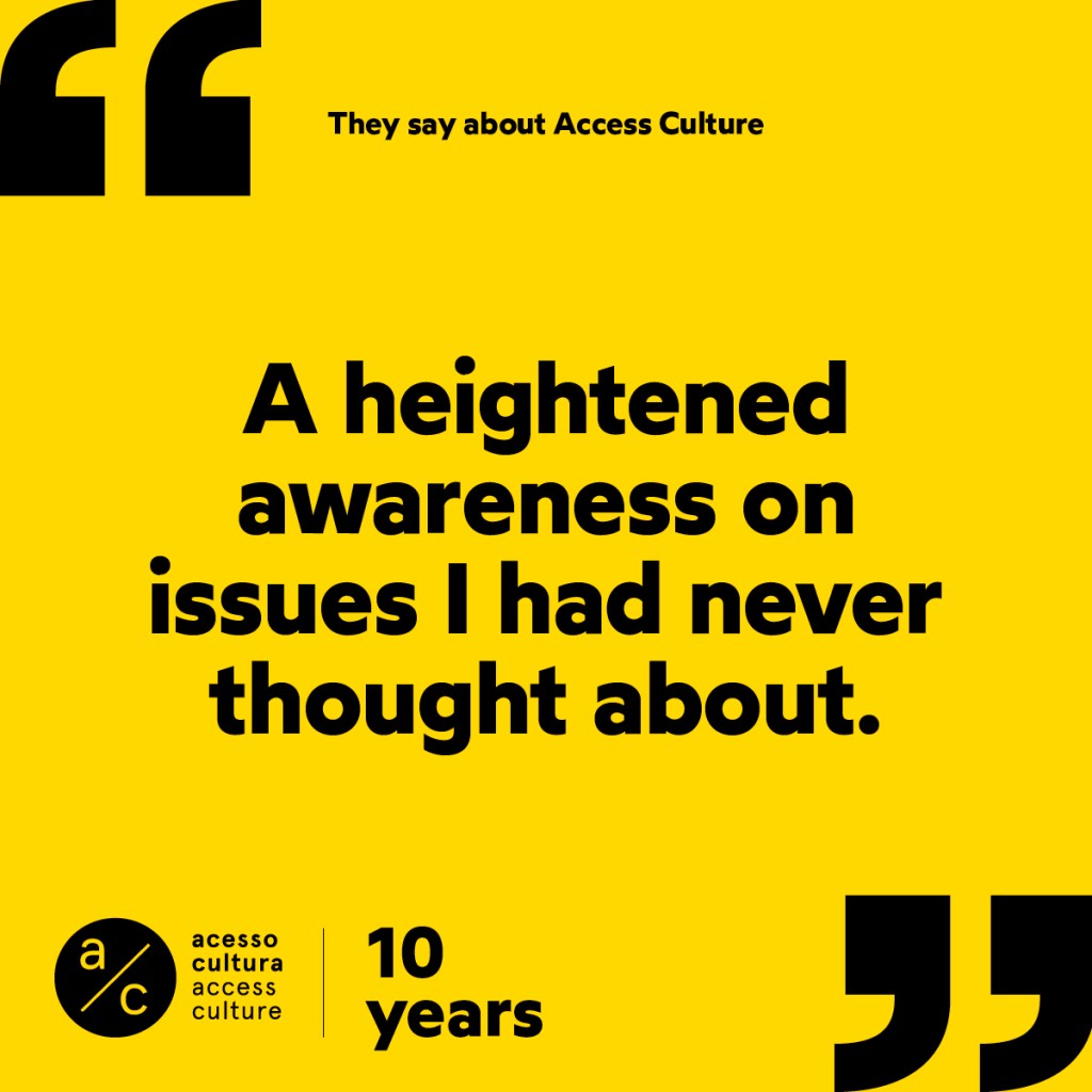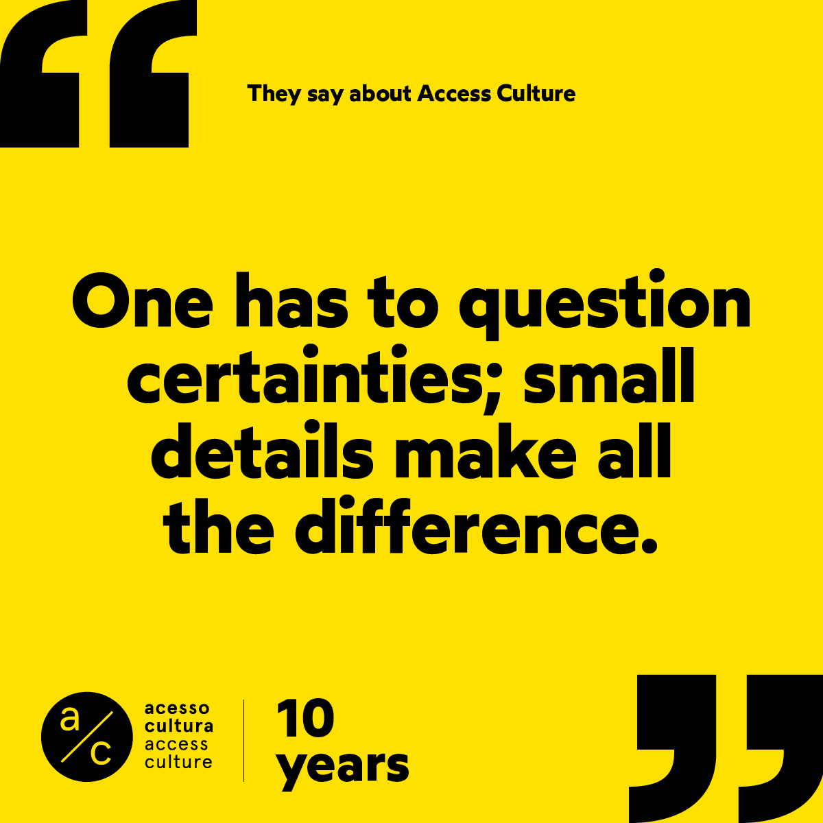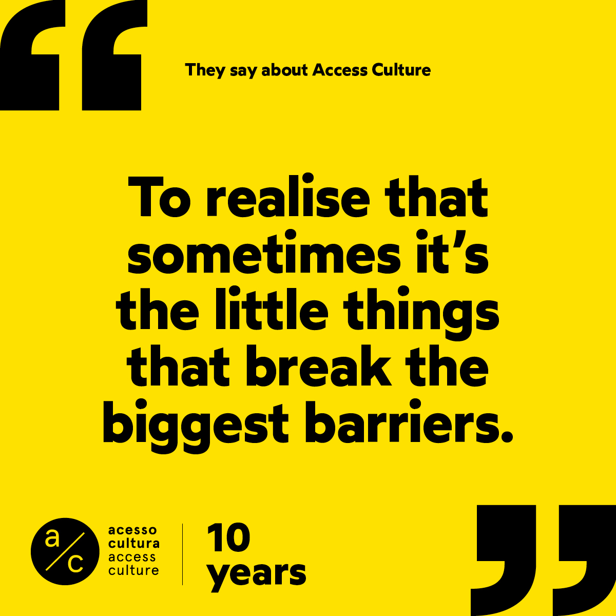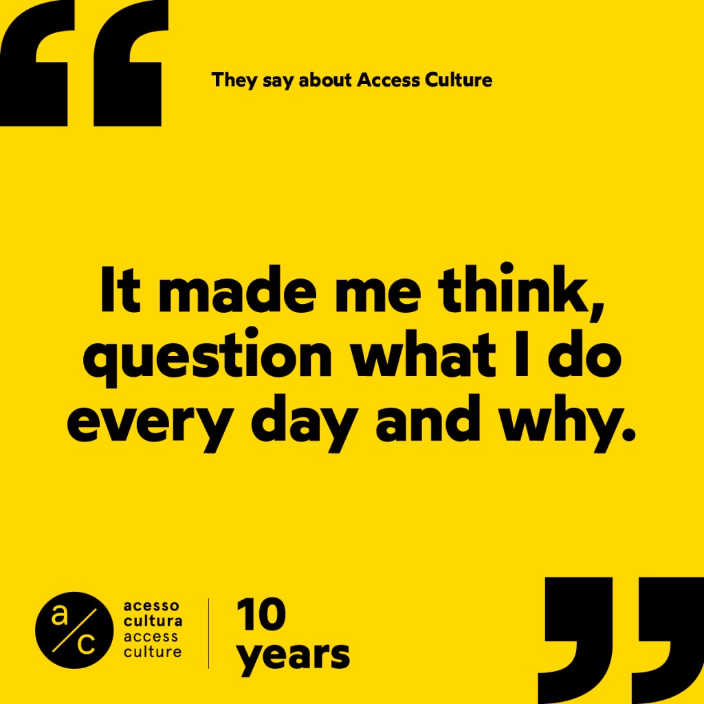 In 2023, Access Culture became 10 years old. Over these years, people who follow our work and participate in our activities have shared with us what this experience has meant to them. In most cases, this feedback comes anonymously, through the evaluation forms of our initiatives.